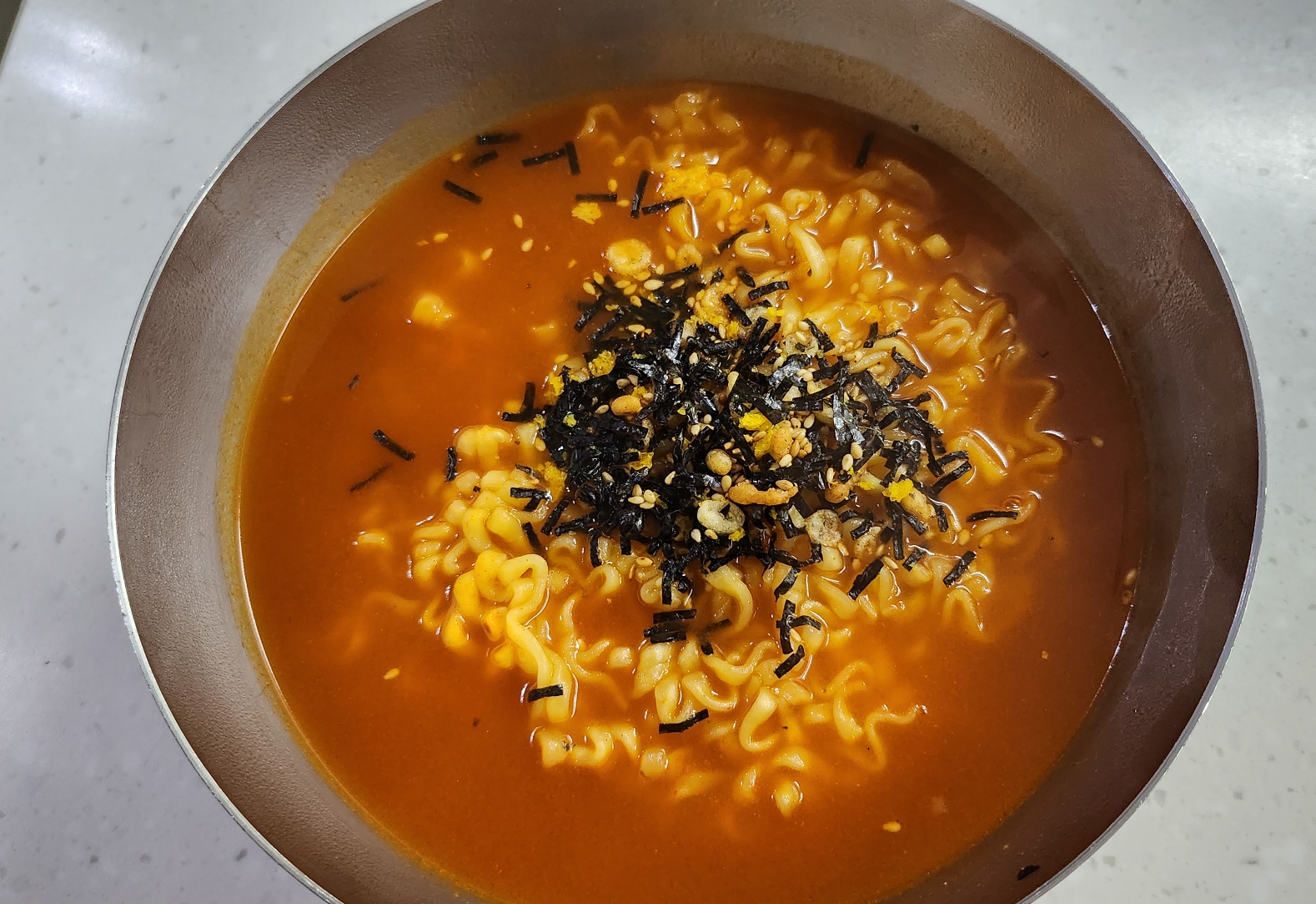 무엇보다 토핑 김가루와 통깨, 튀김가루가 맛을 확 끌어올린다.